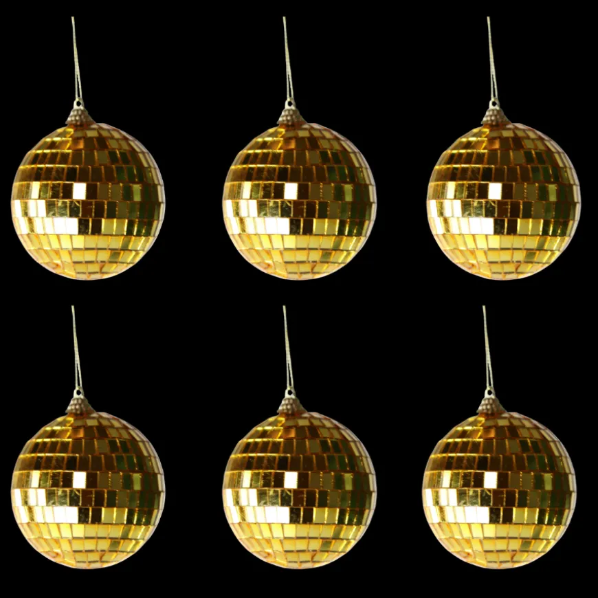 Dette sæt består af 6 diskokugler til ophæng guld (8 cm) – køb samlet og spar.