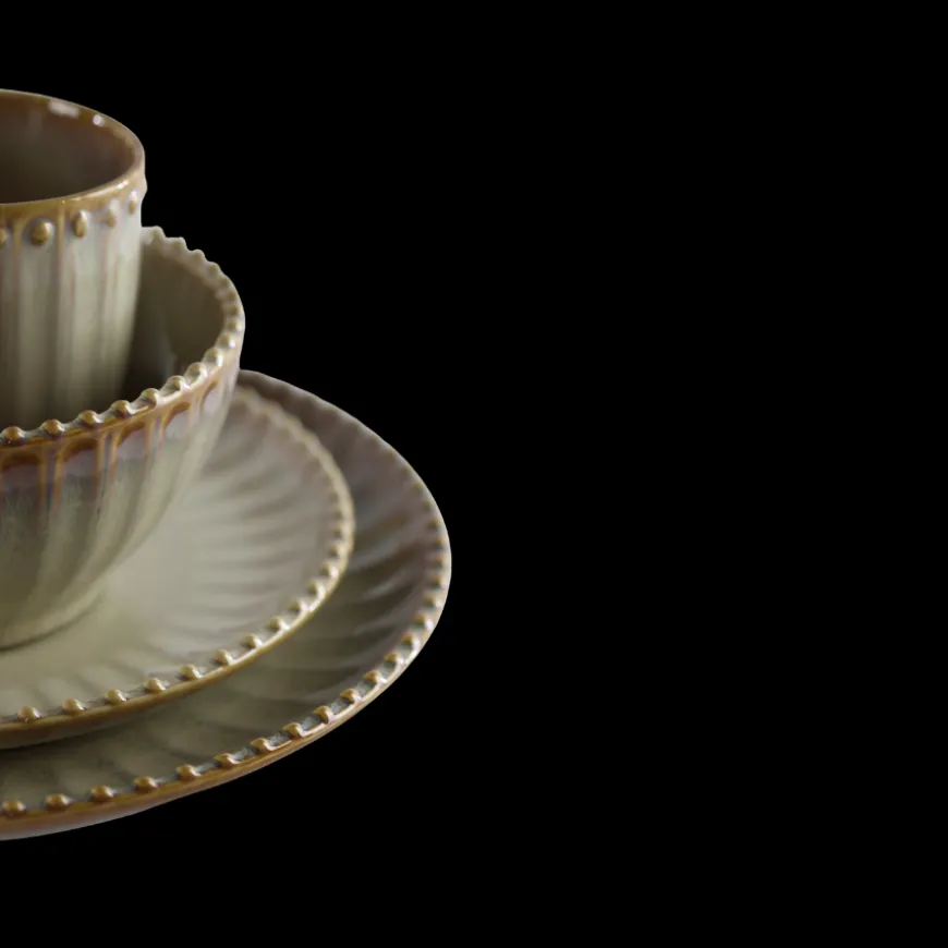 Keramik Krus FALLON i reaktiv beige glasur bringer et glansfuldt udtryk til borddækningen. Den bløde, varme nuance kombineret med den fine, riflede overflade og de små detaljer ved kanten giver kruset et unikt præg. Perfekt til både morgenkaffen og eftermiddagsteen, hvor det elegante design tilfører en hyggelig stemning til borddækningen.