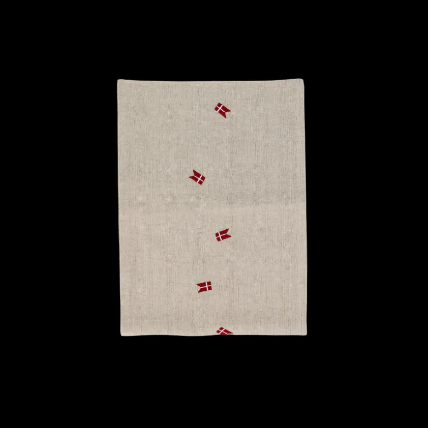 Tilføj en festlig stemning til din borddækning med denne smukke bordløber, som er broderet med små fine Dannebrog. Bordløberen måler 30×180 cm, og passer dermed til større borde og særlige lejligheder som fødselsdage, og andre festligheder. Det broderede Dannebrog-motiv tilføjer et klassisk og elegant touch, der hylder danske traditioner.