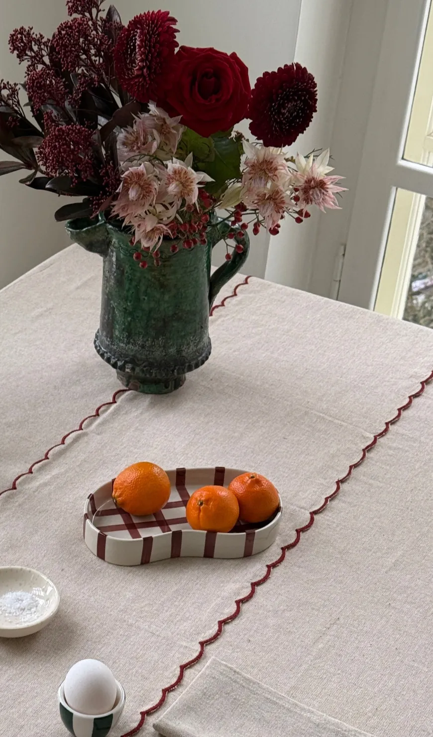 Bordløber med rød broderi kant (30×180 cm) tilføjer et elegant touch til din indretning. Denne stilfulde bordløber er ideel til både hverdag og festlige anledninger, og den skaber en varm atmosfære, hvor som helst den placeres. Den fine røde broderikant giver et unikt præg, der skaber blikfang og liv i dit hjem. Uanset om det er til et festmåltid, brunch med vennerne eller en hyggelig middag, vil denne bordløber forbedre din borddækning og gøre enhver begivenhed mere indbydende. Den lette kvalitet gør den nem at vedligeholde, mens dens størrelse passer perfekt til de fleste borde. Giv dit spiseområde den opmærksomhed, det fortjener, og lad denne bordløber blive et centralt element i din boligindretning. Juledug og Julebordløber bringer julen ind i hjemmet og skaber hyggelig atmosfære