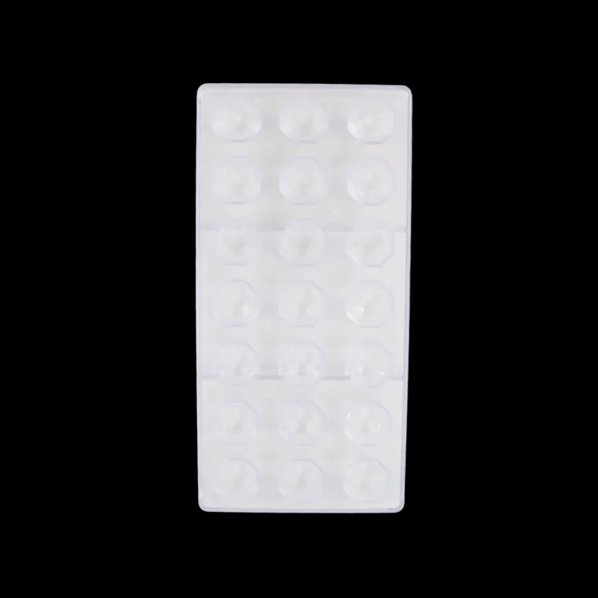 Chokoladeform i diamantform er det perfekte valg, når du vil skabe elegante og luksuriøse chokolader derhjemme. Med målene 27 x 15 x 2,5 cm får du en praktisk form med flotte, facetterede fordybninger, der giver dine chokolader et eksklusivt udtryk. Formen er fremstillet i holdbart, gennemsigtigt plast, som gør det nemt at følge processen og sikre en glat, blank overflade. Ideel til både klassisk chokolade, fyldte praliner eller kreative dessertprojekter, hvor præcision og æstetik går hånd i hånd.