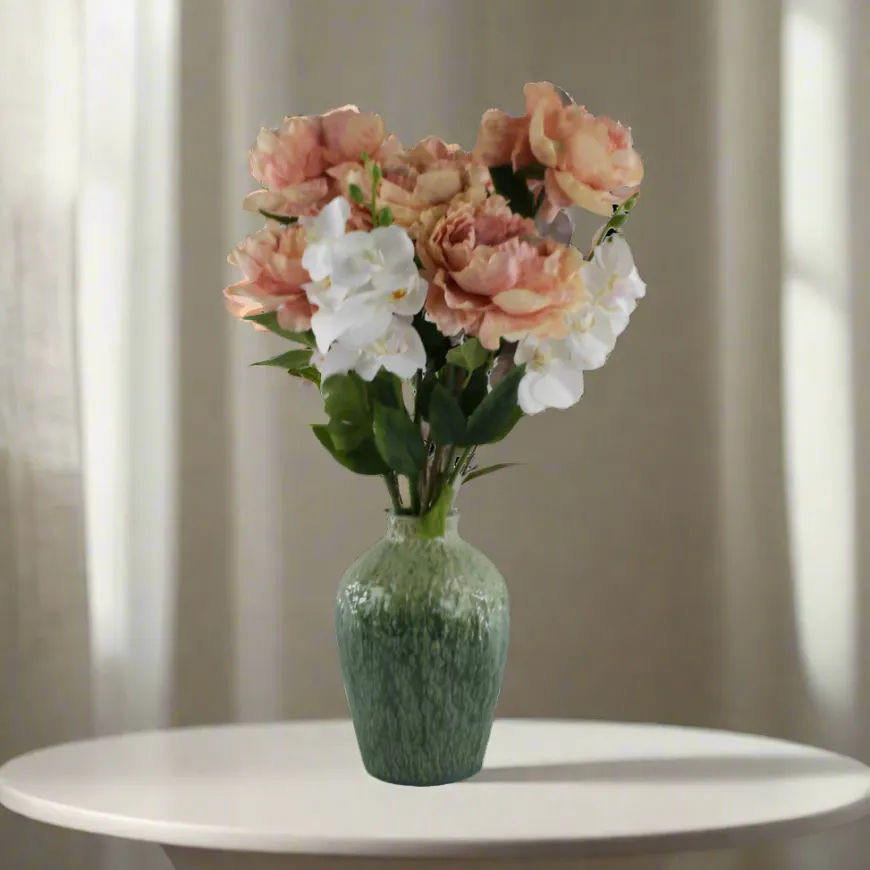 Vores Evighedsbuket Lyserød er den perfekte tilføjelse til dit boliginteriør, designet til at bringe liv og farve ind i dit hjem. Med sin smukke sammensætning af forskellige kunstige blomster, der fanger naturens skønhed, skaber denne buket en atmosfære af elegance og stil. Perfekt til enhver indretning – tilføj en buket til dit spisebord, en hylde eller dit kontor. Den kræver ingen vedligeholdelse, hvilket gør den ideel for den travle livsstil, og den vil aldrig visne. Vælg selv mellem vores store udvalg af vaser så den passer perfekt ind i din indretning. Giv dit hjem et friskt pust og nyd skønheden af blomster året rundt uden besvær.