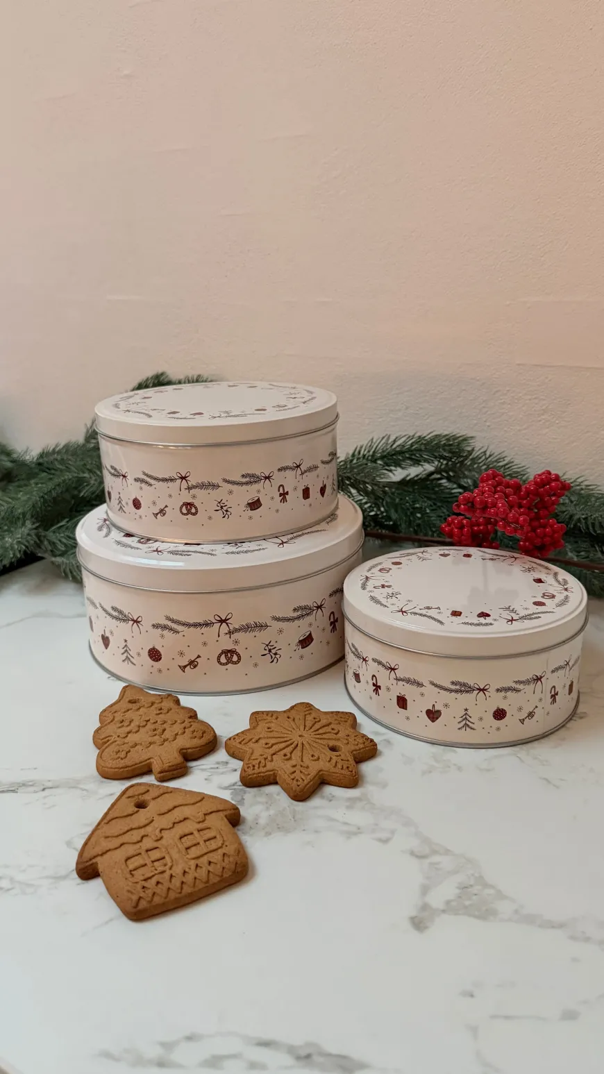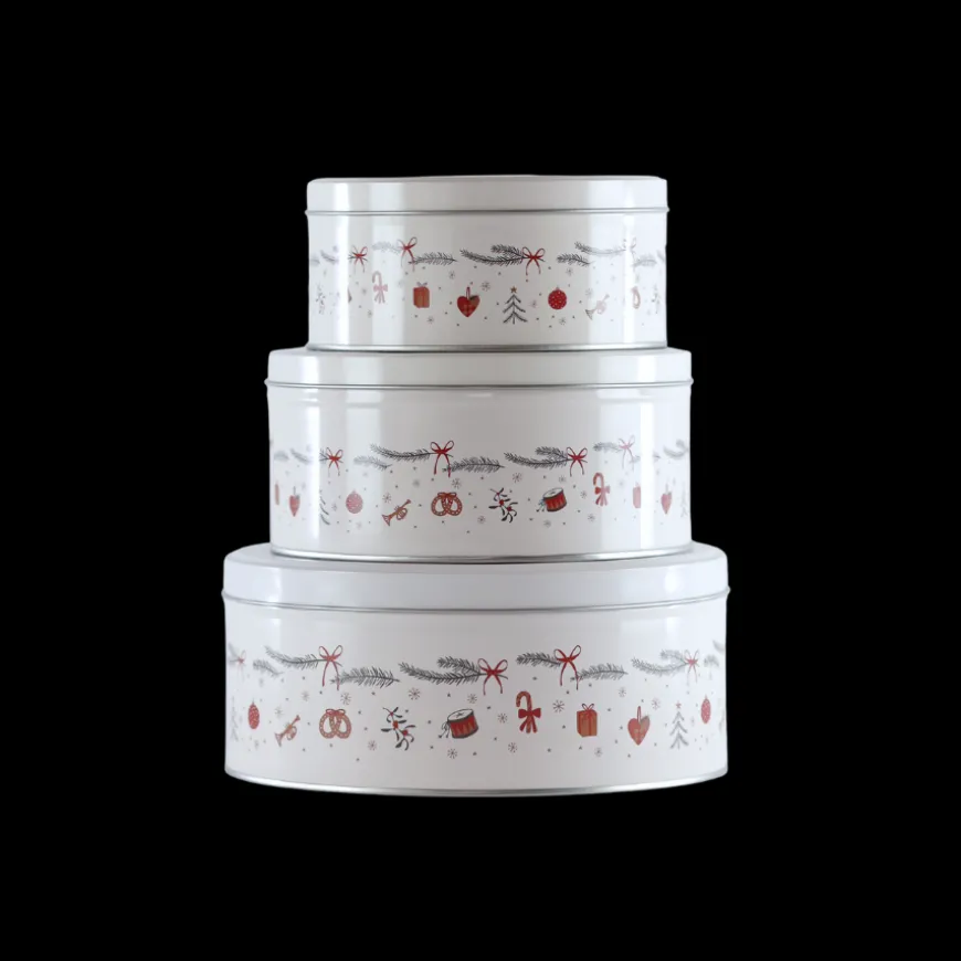 Kagedåse sæt i juledesign med 3 stk. er den perfekte opbevaringsløsning til julens småkager, konfekt og andre lækkerier. Dåserne er udsmykket med klassiske julemotiver i røde og grå nuancer, som skaber en hyggelig og nostalgisk stemning i køkkenet. De tre forskellige størrelser gør det nemt at organisere og opbevare forskellige slags bagværk eller bruge dem dekorativt som en del af julepynten.