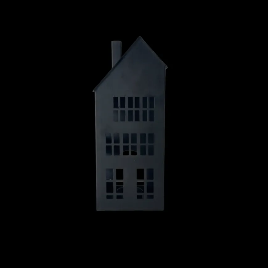 Skab hygge og stemning i hjemmet med dette dekorative lyshus i sort metal. Med sit charmerende husdesign og detaljerede vinduesudskæringer spreder det et smukt, varmt lys, når du placerer et fyrfadslys eller en LED-lysestage indeni.