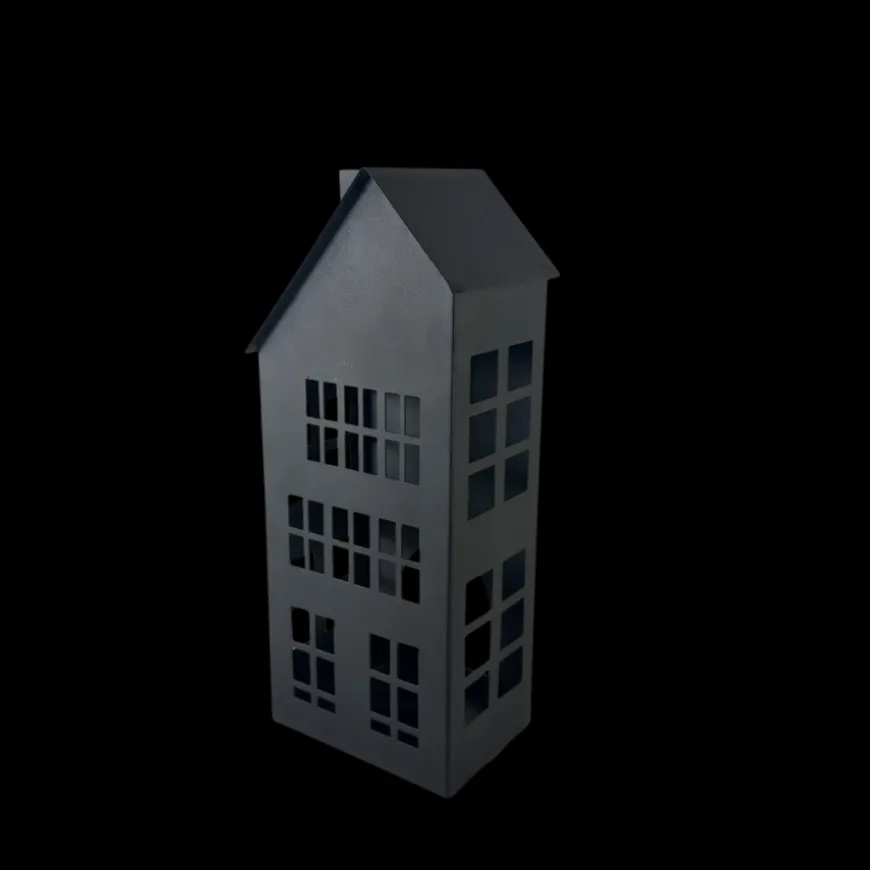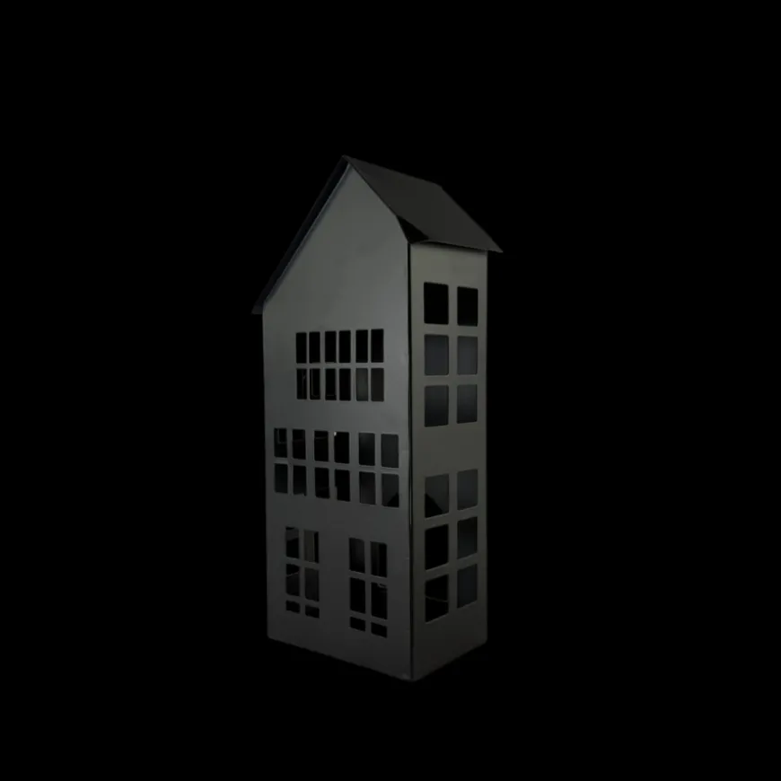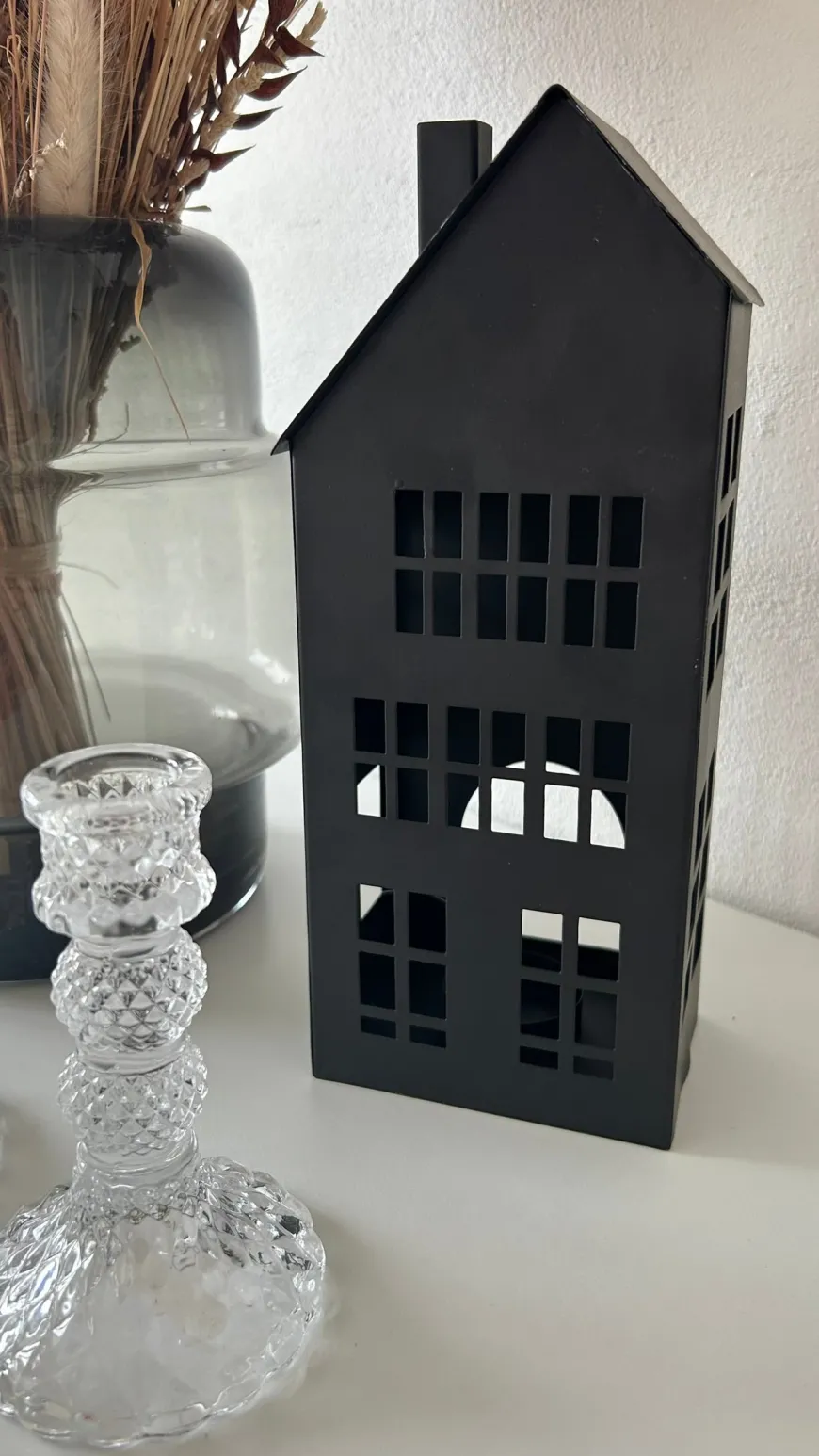 Lyshuset er fremstillet i robust metal med en mat sort overflade, der passer perfekt til både moderne og klassisk indretning. Den 25 cm høje størrelse gør det velegnet som et dekorativt element på vindueskarmen, hylden eller som en del af et hyggeligt bordarrangement.