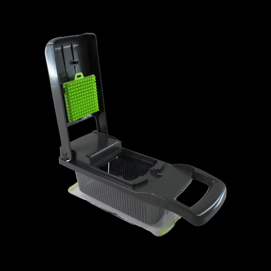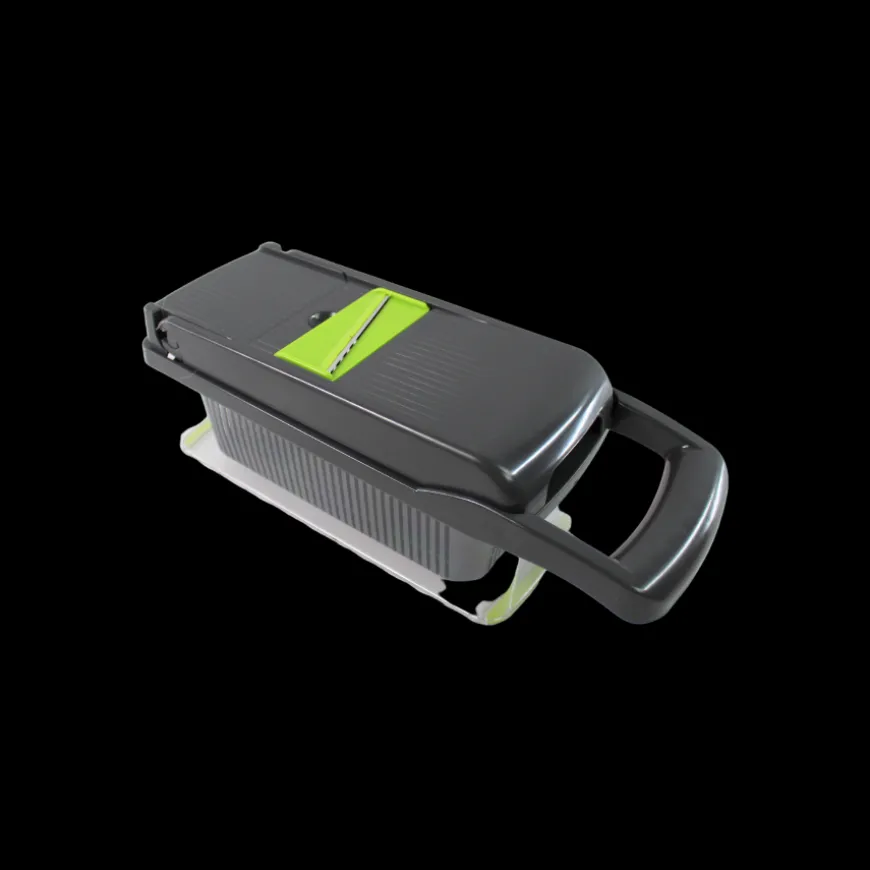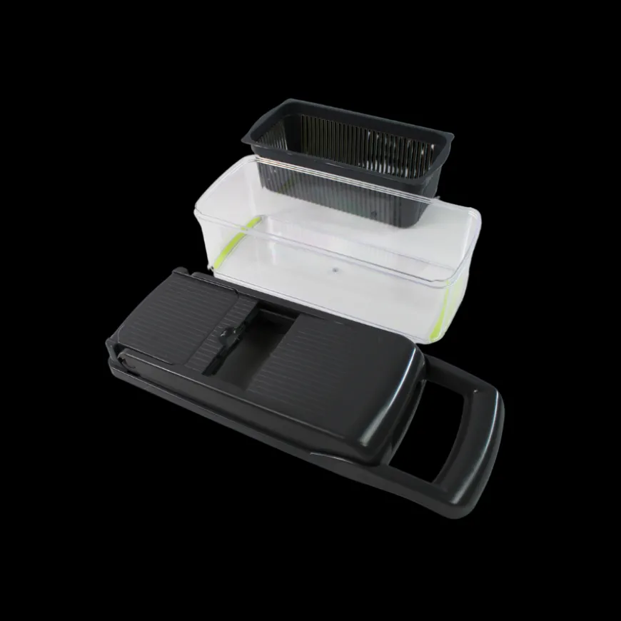 Det ergonomiske design sikrer en sikker og behagelig brug, og alle dele er BPA-fri og tåler opvaskemaskine for nem rengøring. Perfekt til hurtig og præcis forberedelse af grøntsager, frugt og ost.