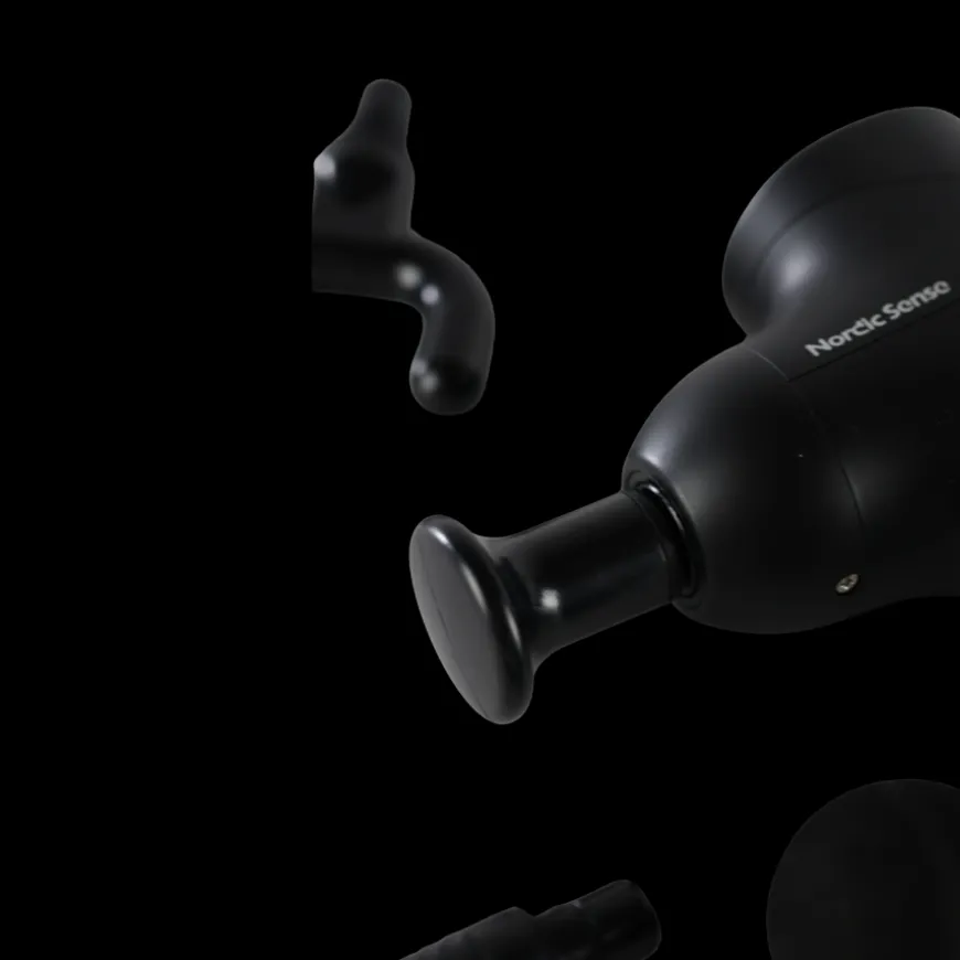 Nordic Sense mini massagepistol i sort er en kompakt og effektiv løsning til hurtig muskelafslapning og restitution. Med 4 forskellige massagehoveder kan du tilpasse behandlingen efter behov – fra dybdegående massage til mere skånsom stimulering. Den har 4 intensitetsniveauer, så du nemt kan justere styrken, og en praktisk lysindikator viser, hvornår den er i brug. Massagepistolen er genopladelig og slukker automatisk efter 15 minutter for sikker anvendelse. Den leveres i en smart opbevaringstaske, der gør den nem at have med på farten.