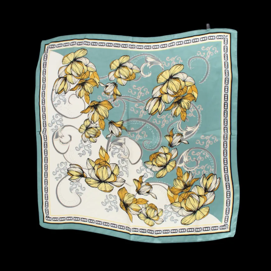 Satin tørklædet med blomsterdesign (70×70 cm) tilfører et elegant touch til dit outfit og løfter din stil til nye højder. Dette tidløse accessory kombinerer luksuriøs satin med et smukt blomstermotiv, der skaber en iøjnefaldende kontrast til enhver påklædning. Tørklædet kan bæres på utallige måder – knyttet om halsen, samlet i håret eller som et dekorativt element på en taske. Den bløde og glatte tekstur gør det behageligt at have på hele dagen, mens det tilførsel af farve og liv til din garderobe. Denne unikke accessory er perfekt til både hverdagslook og festlige anledninger, hvor sophistication og stil er i fokus. Gør dit outfit komplet med dette smukke satin tørklæde, der ikke bare er en praktisk accessory, men også et statement piece, der viser din sans for kvalitet og æstetik. Invester i stil og elegance med dette håndplukkede tørklæde.