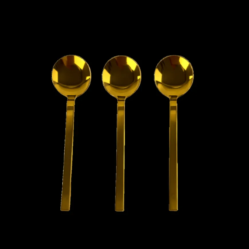 Serveringsske CLARE i guld kommer i et sæt med 3 stk. og giver borddækningen et elegant og moderne præg. Den blanke guldoverflade tilføjer et stilfuldt touch, som passer perfekt til både hverdagsbrug og festlige lejligheder. Skeerne har en praktisk størrelse, der gør dem velegnede til servering af salater, tilbehør eller desserter. Med deres enkle design og holdbare materiale kombinerer de funktionalitet med et dekorativt udtryk, der løfter enhver anretning.