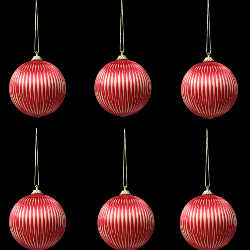 Julekuglerne giver juletræet et klassisk og festligt udtryk med et moderne twist. Kuglerne er dekoreret med elegante lodrette striber i rød og guld, som skaber et flot spil mellem farverne og tilfører dybde til pynten. Den glansfulde overflade reflekterer lyset smukt og giver en varm glød, der passer perfekt til julens stemning. Med deres størrelse på 8 cm fungerer de som dekorative blikfang på træet, men kan også kombineres med andre kugler for et varieret og harmonisk udtryk. Et stilfuldt sæt, der kan bruges år efter år.