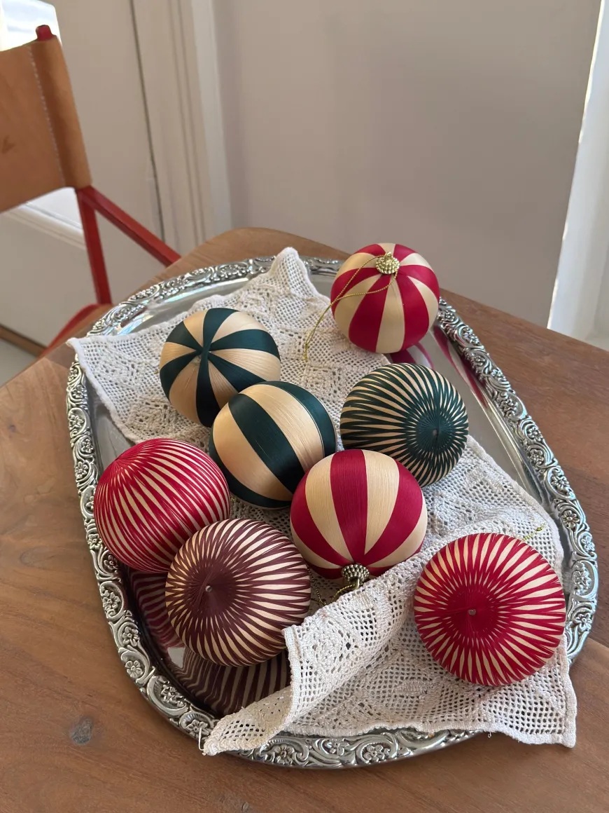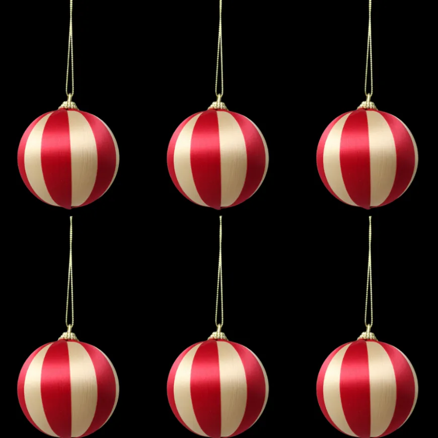 Julekuglerne giver juletræet et klassisk og festligt udtryk. Kuglerne er designet med elegante, lodrette striber i rød og guld, der skaber et smukt og levende spil mellem farverne. Den blanke overflade reflekterer lyset og tilfører en varm og indbydende glød til julepynten. Med deres størrelse på 8 cm fungerer de som perfekte blikfang på træet, men kan også kombineres med andre kugler for et harmonisk og gennemført helhedsindtryk. Et tidløst sæt, der bringer den traditionelle julestemning frem år efter år.