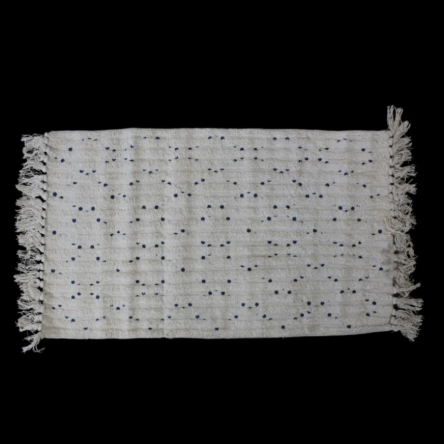 Denne bademåtte er designet til at skabe et moderne og elegant udtryk i dit badeværelse. De blå prikker tilføjer subtil charme og passer perfekt ind i enhver indretning.