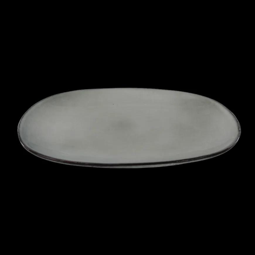 Den neutrale grå nuance med diskret kantdetalje gør det let at kombinere med andet service, og den keramiske kvalitet sikrer både holdbarhed og et smukt finish. Ideelt til servering af salater, kød, tapas eller frugt.