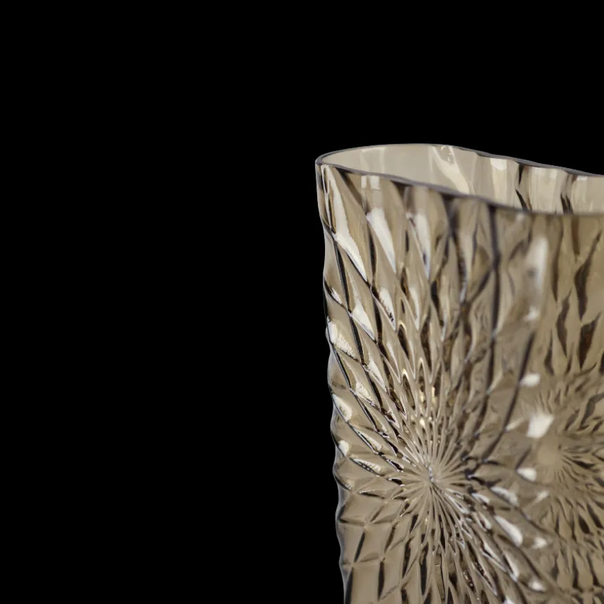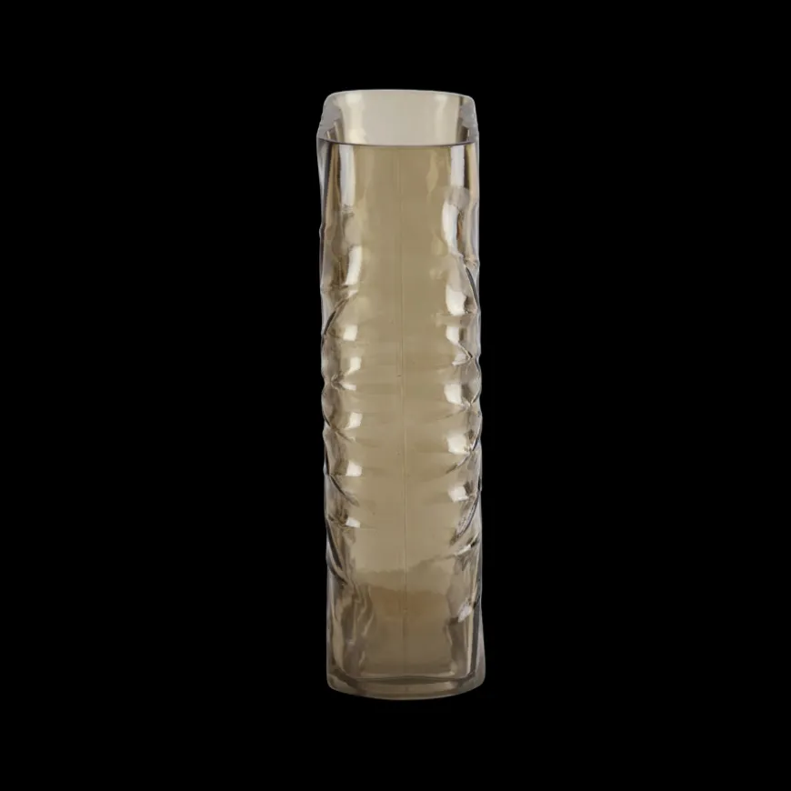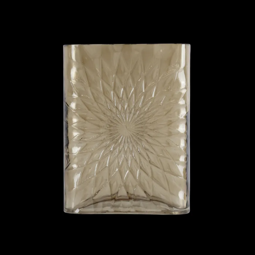 Glas Vase ANJELA i macchiato-farvet glas er et elegant statement-piece til hjemmet. Den rektangulære form og det smukke, strukturerede mønster giver et moderne og sofistikeret udtryk, der fanger lyset på en dekorativ måde. Med sine mål på 19 x 7 x 25 cm har vasen en slank silhuet, der gør den perfekt både som solitær dekoration og som base for stilfulde buketter eller enkelte grene. Den varme, røgfarvede tone tilfører et eksklusivt præg til indretningen.