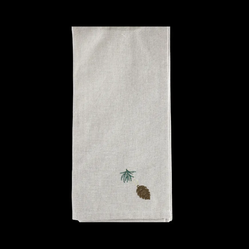 Jule viskestykke m. Grankogle Broderi (50x70cm) tilfører køkkenet en julestemning. Det elegante broderi af en grankogle og grønne grene giver et enkelt udtryk, som passer perfekt til julens rolige farver og varme toner. Fremstillet i en blød, naturfarvet tekstil med let struktur, der både er praktisk og dekorativ. Brug det som et smukt element i køkkenet eller hæng det frem som en del af julepynten.