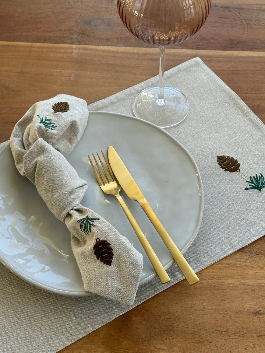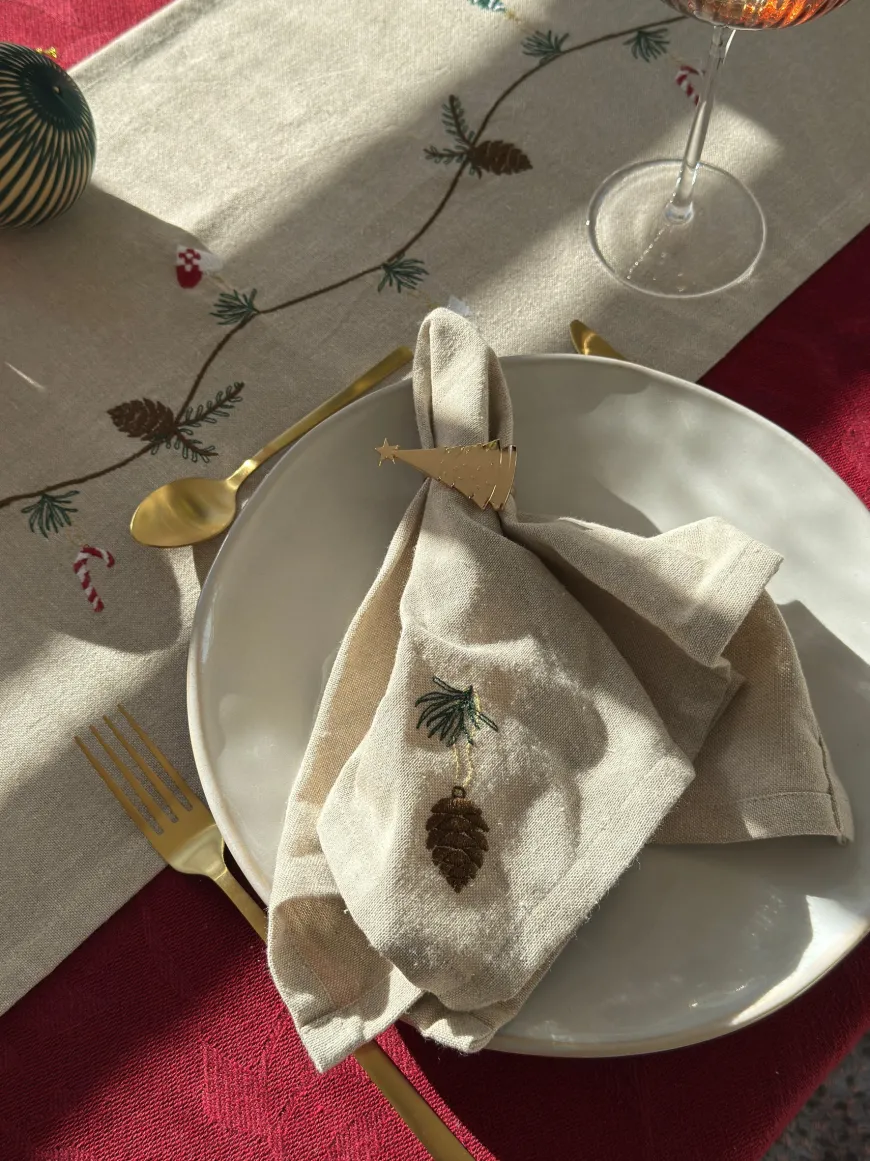 Julemundserviet med grankoglebroderi giver et elegant udtryk, der passer til både klassisk og moderne borddækning. Servietten måler 40×40 cm og er ideel til at skabe en indbydende atmosfære omkring middagsbordet. Kombinér den med stentøj, grønne grene og levende lys for et fuldendt julet udtryk. En smuk detalje, der løfter borddækningen og tilføjer lidt ekstra til julens hyggelige måltider.