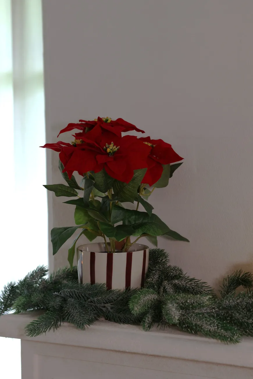 Kunstig julestjerne i potte (40 cm) rød er en smuk og tidløs dekoration, der bringer julestemningen ind i hjemmet år efter år. De dybe røde blade og de naturtro grønne detaljer skaber et elegant udtryk, som passer perfekt på spisebordet, i vindueskarmen eller som en del af en juledekoration. Fordelen ved den kunstige julestjerne er, at den altid står frisk og flot uden behov for vanding eller pasning, så du kan nyde julens klassiske blomst uden bekymringer.