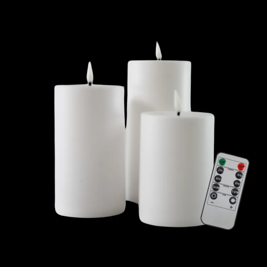 Skab en hyggelig og stemningsfuld belysning med dette sæt af 3 hvide LED-bloklys i plast. De er perfekte til både indendørs og udendørs brug og giver et varmt og behageligt lys uden røg eller brandfare.