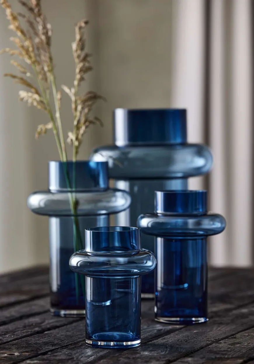 Lyngby’s Tube Vase i Dark Blue er en mesterlig kombination af elegance og modernitet. Mundblæst og skabt af gennemfarvet glas, fremhæver dens slebne kant dens unikke form, hvilket gør den til en imponerende skulptur i ethvert rum. Den enkle og moderne æstetik gør den velegnet til både friske og tørrede blomster, og dens dybe blå farvetone tilføjer en sofistikeret touch til enhver indretning. Bemærk, at den håndlavede proces kan resultere i små bobler i glasset, hvilket kun tilføjer til dens charme og karakter. Med en højde på 25 cm er denne vase en markant og smuk tilføjelse til enhver boligindretning, der ønsker at tilføre et strejf af elegance og stil.