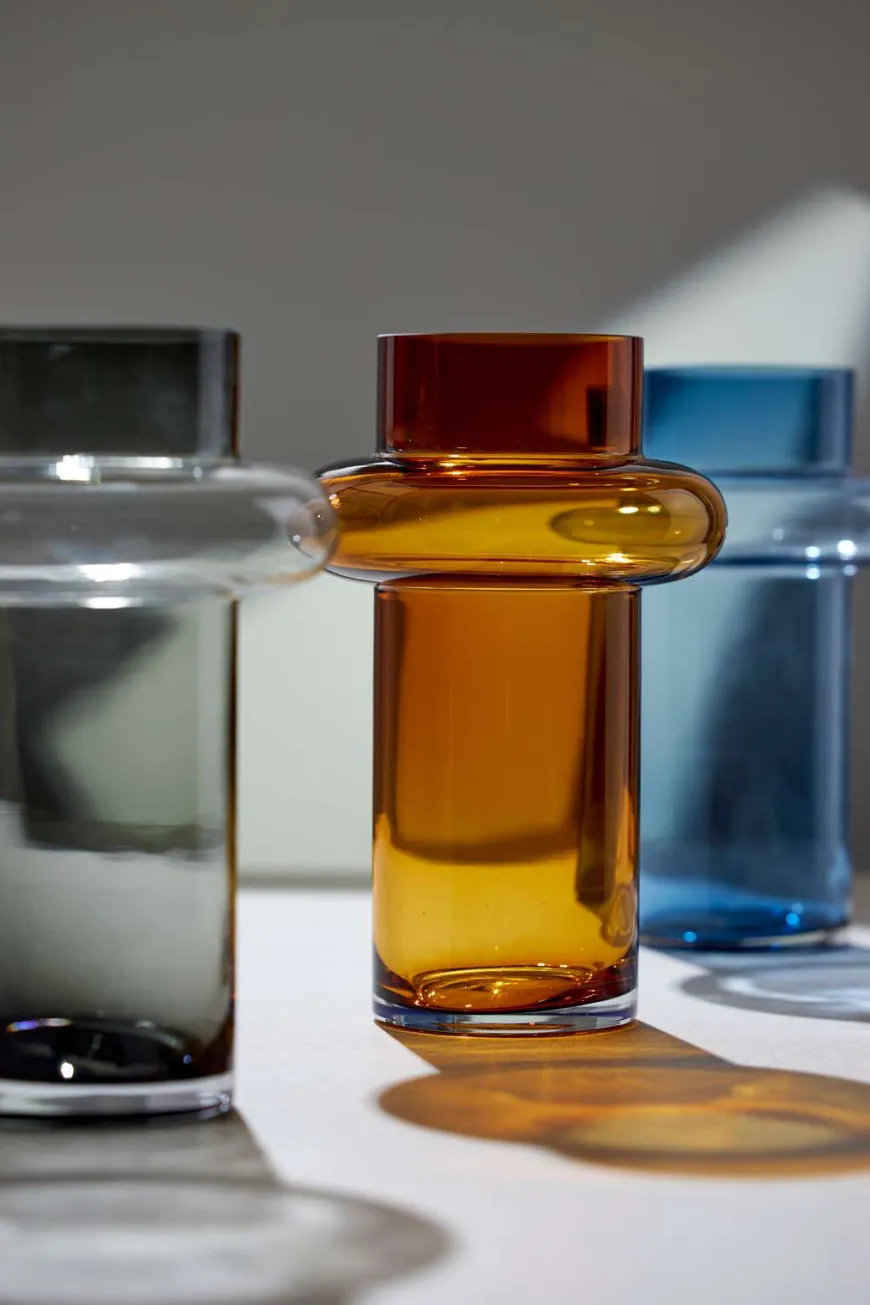 Lyngby’s Tube Vase i Dark Blue er en mesterlig kombination af elegance og modernitet. Mundblæst og skabt af gennemfarvet glas, fremhæver dens slebne kant dens unikke form, hvilket gør den til en imponerende skulptur i ethvert rum. Den enkle og moderne æstetik gør den velegnet til både friske og tørrede blomster, og dens dybe blå farvetone tilføjer en sofistikeret touch til enhver indretning. Bemærk, at den håndlavede proces kan resultere i små bobler i glasset, hvilket kun tilføjer til dens charme og karakter. Med en højde på 30 cm er denne vase en markant og smuk tilføjelse til enhver boligindretning, der ønsker at tilføre et strejf af elegance og stil.