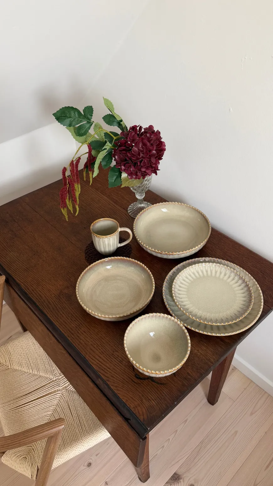 Skål FALLON i reaktiv beige har et smukt udtryk, der passer perfekt til hverdagen. Glasuren giver fine farvespil, så skålen får sit eget særpræg. Den dekorative kant og bløde form gør den flot på bordet, uanset om den bruges til morgenmad, snacks eller servering af mindre retter. En glansfuld skål, der kombinerer enkelhed og charme på fineste vis.