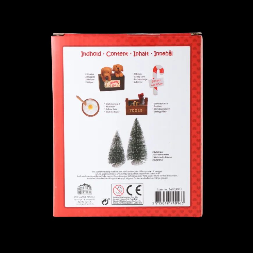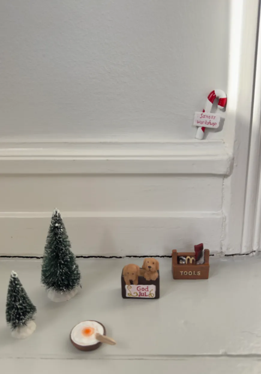 Tilbehør til Nissedør 6 Dele er et sæt, der gør nissens univers endnu mere levende og hyggeligt i december. Med små detaljer som to juletræer, to søde hundehvalpe, en skål med æg, en skål med risengrød, en værktøjskasse samt en klassisk slikstok med skilt, får du alt, hvad der skal til for at skabe en magisk julestemning omkring nissedøren. Tilbehøret er perfekt til at overraske børnene med små ændringer hver dag og skabe en rød tråd gennem hele julemånedens traditioner. En hyggelig måde at lade nissen flytte ind og bringe ekstra juleglæde ind i hjemmet.