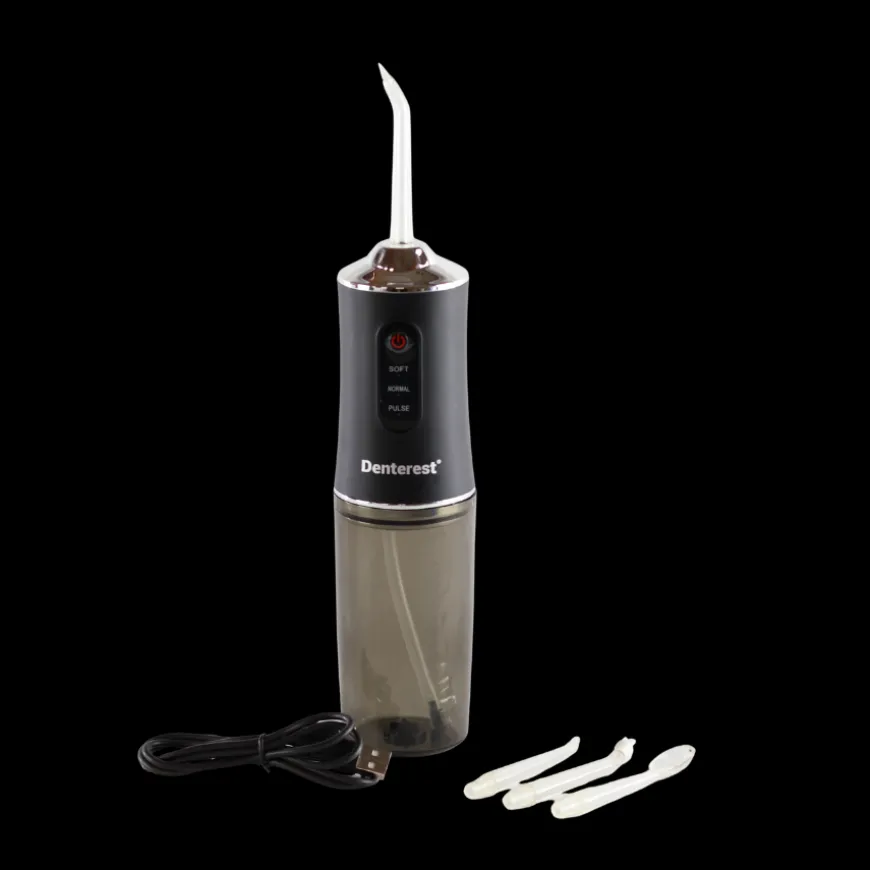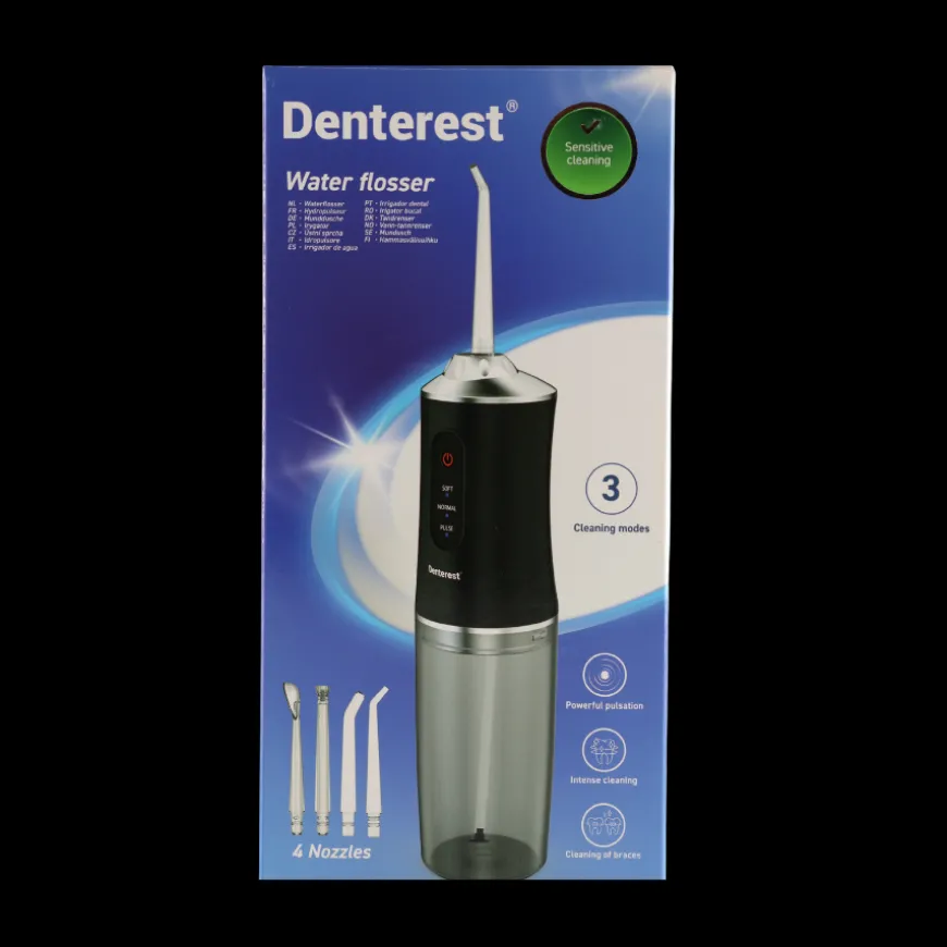 Få en frisk og grundig mundhygiejne med Denterest vandflosseren. Den bruger kraftige vandpulseringer til effektivt at fjerne plak, madrester og bakterier mellem tænderne – steder hvor en almindelig tandbørste ikke kan nå. Perfekt til både daglig rengøring, følsomme tandkød og brug med bøjler eller broer.